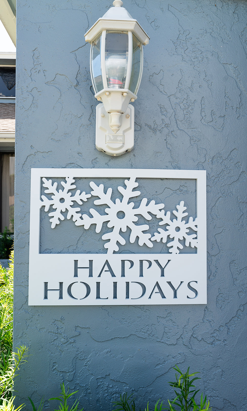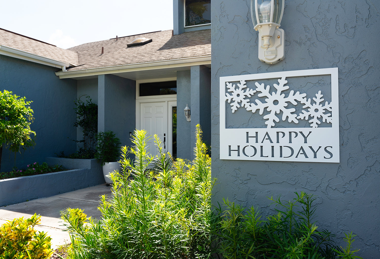 Each plaque features a beautifully cut “Happy Holidays” design that captures the spirit of the season — ideal for the front of your home, porch or entryway. Whether you’re decorating for a cozy winter gathering or simply spreading holiday joy, this plaque adds a charming finishing touch to your outdoor décor.